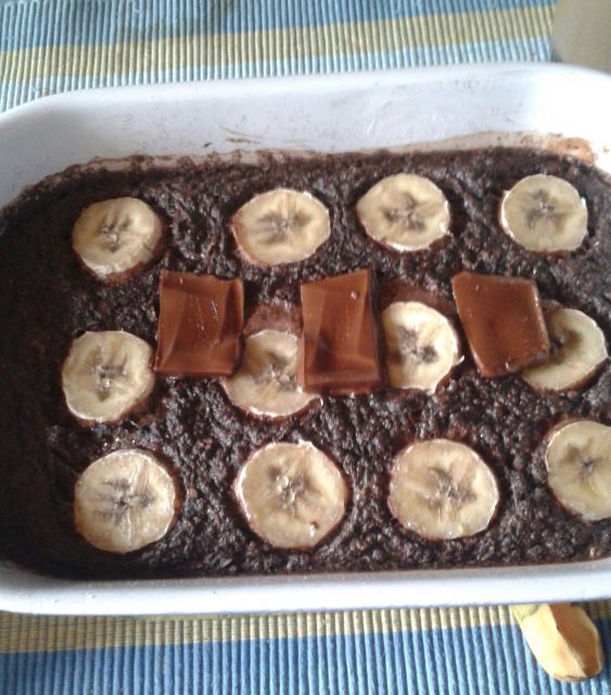 zapečeni ovseni kosmiči s kakavom, banano in čokolado