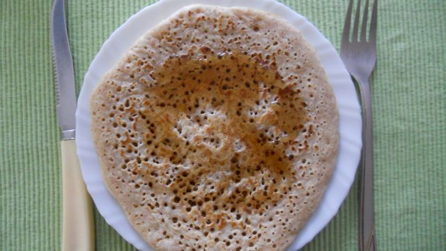 kvinojini kosmiči z breskvo, malo mleka, skuhano