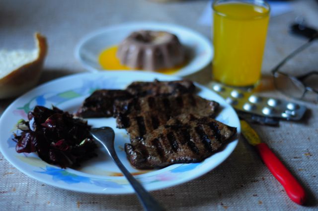 Glavna jed: pražena jetrca, kruh, čaj (lipa, lučnik, limona)