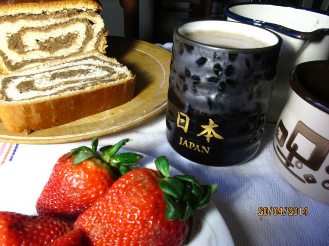 Pri nas pa standardno: kakav in kos kruha z namazom, tokrat je bila slivova marmelada.