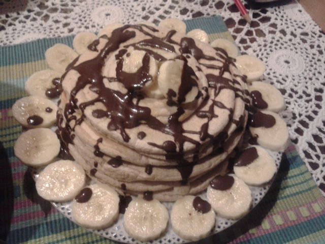 danes spet beljakovinske palačinke, tokrat z banano in grenkim kakavom