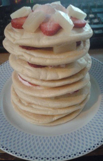beljakovinske palačinke z jagodami, skuto in ananasom