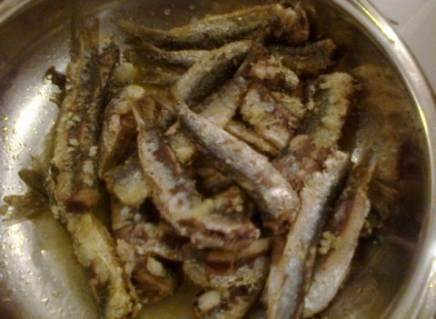 Pri nas pa včeraj kuhal oziroma pekel mož. Kalamari na žaru in sardelce.