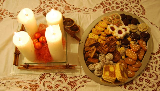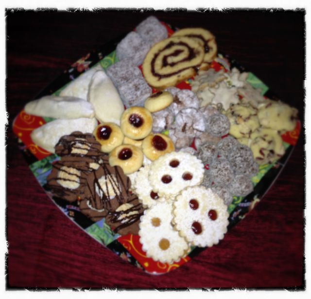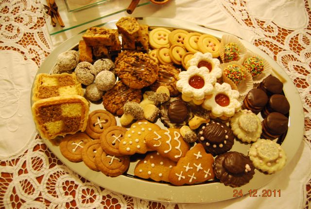 Hm, jaz sem pa čisto pozabila slikah krožnik poln piškotov in peciva. Sem pa naredila nekaj piškotov po receptih mamamie, ampak so vsi tukaj na forumu gor, noben kot samostojen recept z baze. No, tiste pripenjam sem: kapučino piškoti, mozartovi piškoti, piškoti s kardamomom in rožno vodo