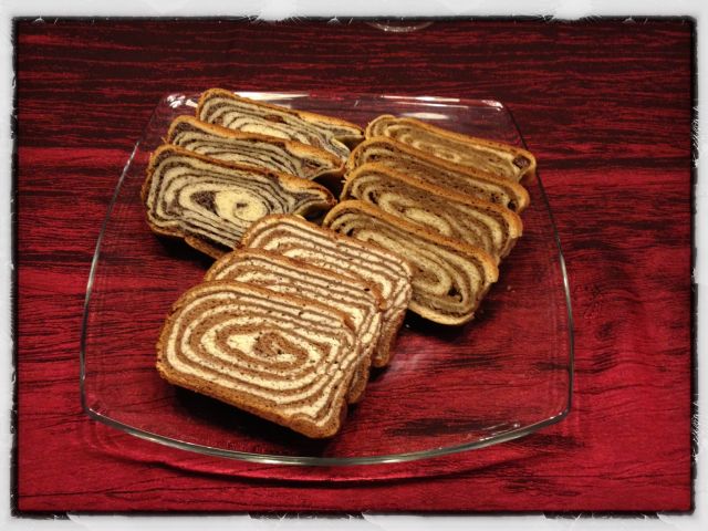 včeraj še gubana z lešniki in marmorni kolač z višnjami