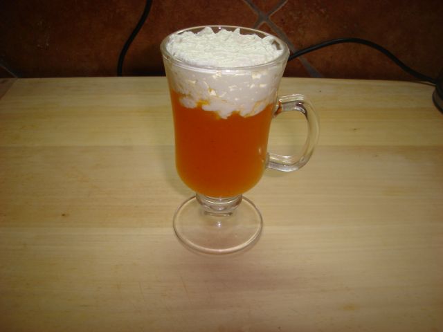 Sama sem danes privoščila tole "pivo" možu po kosilu; sok kakija in sladka smetana.