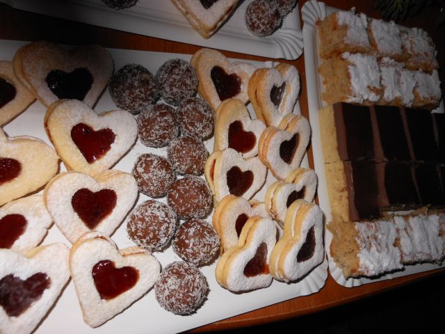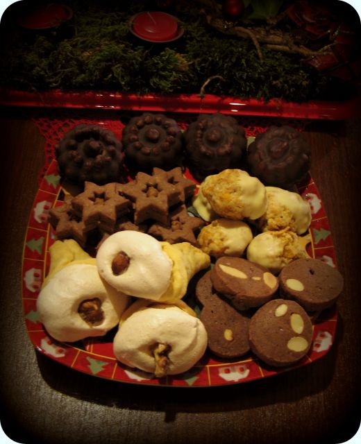 ), cimetovo-čilijevi piškoti (štihproba za božično peko, moram rečt, da so super, čeprav traja), taščini jeziki, cimetove zvezdice s speculoos namazom in čokogriljaž cekini. Za kak teden bo, potem pa spet veselo na delo ![]()
