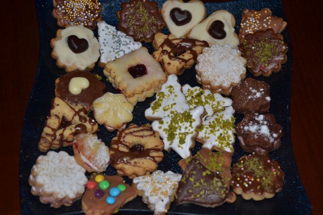 Bravo za lepe piškote! Ne dvomim, da so prav tako slastni kot zgledajo! Mamamia, zanimajo me te bele smrečice na zadnji fotografiji z zelenim posipom. Pistacije? Kakšen poseben recept? Lahko prosim zanj?