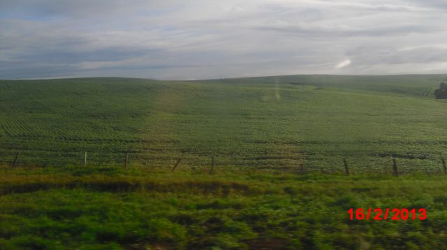 na sliki zgoraj, pejsaž spominja na sibirijo ( pa ne po temperaturah ), posneto iz avtobusa, vse monokultura, predvidevam soja, do " horizonta ", tako videl na dveh mestih. Kako kolobarijo ( a je pol drug let vse druga monokultura ) pa kako je s škodljivci si ne predstavljam.