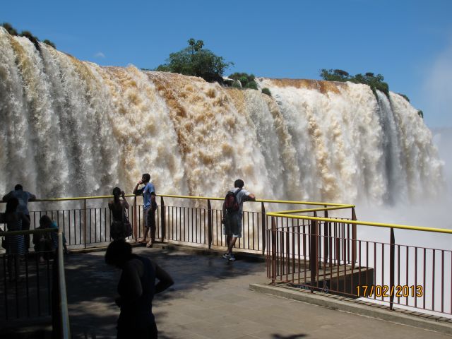 A vodopad? Ah, voda kot voda, preliva se čez eno kamje, res je mal več kot kakšen potok, vodi se reče Reka Parana, menda je sedma največja reka na svetu ( seveda če verjamete, ko pridem nazaj bom prav ureng pogledal Savo pri naši vasi, pa, po kakšnem deževju je kar eno vodovje, morda navozimo kakšnega kamja in še naredimo svetovno atrakcijo................... Uf, matr, se me je prijelo Adam Smithovo podjetništvo od mojega gostitelja iz Ria ). No, evo nekaj posnetkov, kot rečeno, ne ne vem kaj pričakovat, voda kot voda ( le, da je mal motna ):