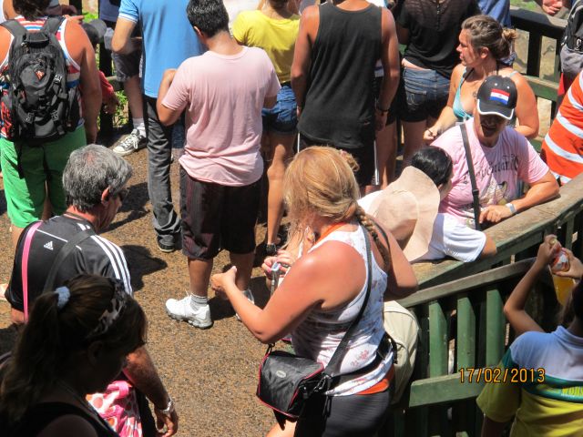 Tukaj se pozanimam, kako in kaj, vse mi pojasnijo: so dve variante, ena je ta brazilska, druga, druga, da se gre v Argentino ( tukaj je tromeja, Brazil, Argentina in Urugvaj ). Tudi vodič Lonely Planet to omenja in hvali argentinsko varianto, ki je popolna turistična ponudba Argentine, kar tu potrdijo. Gre za nek » treking » ( spet bi rad bil mal učen ), hodi se nekje 9 km, vidi se oh in sploh ( seveda, vodopadi tudi ), skratka čudovito, da me je imelo, da se takoj vsedem na avtobus in jim povem, kolk mi je žal, da sem otkril najmanj devet razlogov, zakaj se ne bom udeležil njihove variante, pol se premislim ( naj bojo kar razočarani, ko me ne bo ). Torej, grem na avtobus, vozi nekje pol ure, tam vse urejeno, vodiči, blagajne, avtobusi za naprej, skratka popolna organizacija, vse fenkcionira perfektno, vse doterano v nulo..................