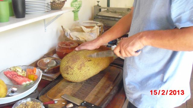 Ežoj, tisti veliki zeleni sadež je jackfruit ;)