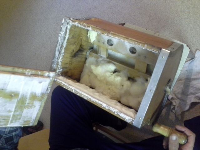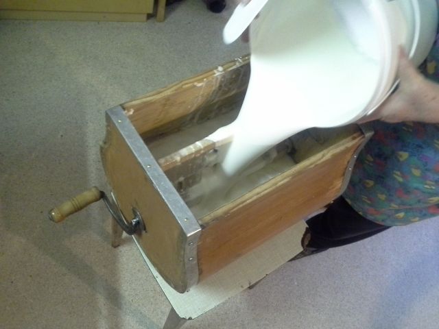 Po več kot pol leta smo problem s pinjo rešili. Mami je sicer kupila pokončno pinjo, ki pa ni tako dobra kot tale. To je naša stara pinja, ki sta jo dva mojstra obnovila in popravila. In v njej se je že naredilo maslo za vse božično novoletne dobrote.