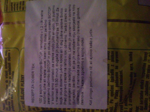 Jaz sem res najprej pomislil na one kvazi sojine medaljone al zrezke. Ker približno tako izgleda.