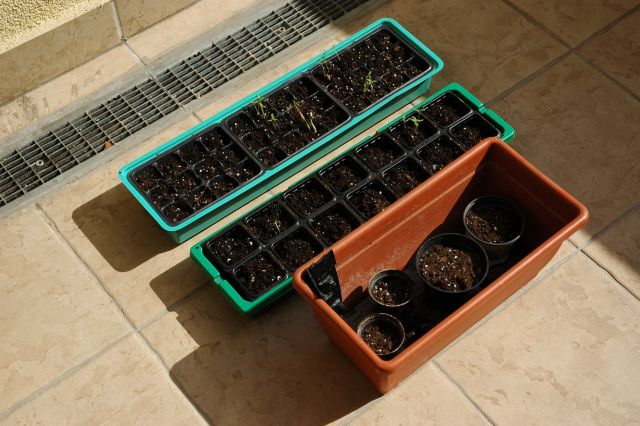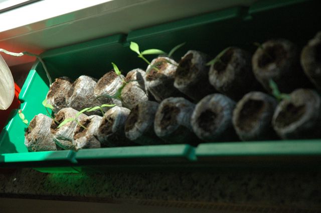 3. posajeno je v dolg cvetlični lonec. Predvidevam, da ko bodo mladike že velike, jih bo treba presaditi, ane? Tega seveda ne bova presadila na vrt, ker se lahko to pomeša z navadnimi paprikami, in so lahko tudi paprike potem malo pekoče (nekje sem to slišal, mogoče tudi ni res). Torej bo to presajeno v nekaj lončkov, ki jih bova imela zunaj na terasi.