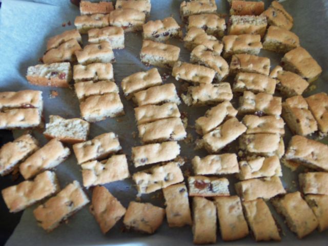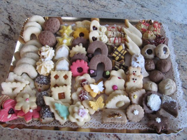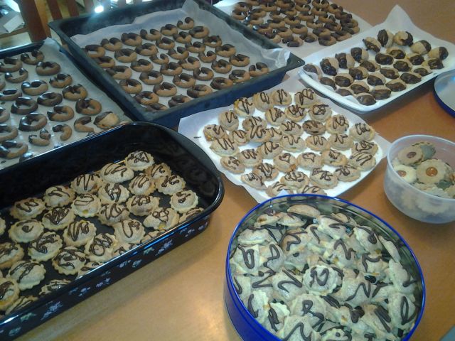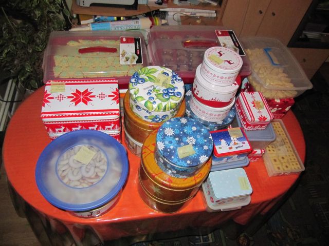 Tole je nastalo pri nas - 24 različnih vrst testa. Piškoti so že po škatlah - hvala za to, da imamo prosto sobo in sedaj služi kot skladišče
