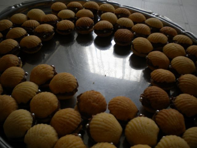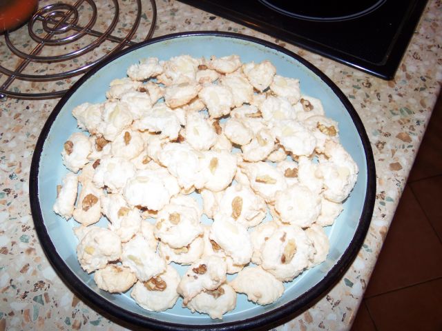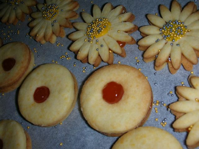 Lepe piškotke pečete. Tudi jaz sem že nekaj spekla -- malo linških iz ostankov, čokoladne rogljičke, pa fini keksi iz baze z orehi