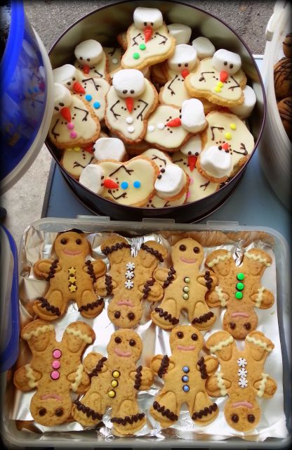 Jaz letos nimam prave volje za peko in krašenje piškotov, tako sem včeraj spekla dve vrst kukijev, vsakih po tri pekače. Eni so bili z bučnimi semeni, drugi dišavni po receptu, ki je omenjen na eni prejšnjih strani. Mislim, da sem s piškoti zaključila za letos. Spekla bom še orehov kolač, pa ajdov kruh z orehi, seveda.