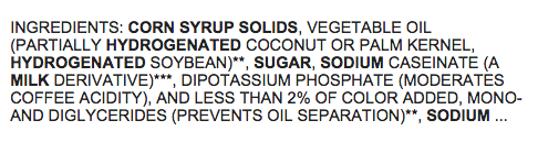 Tole so glavne sestavine umetne smetane za kavo: