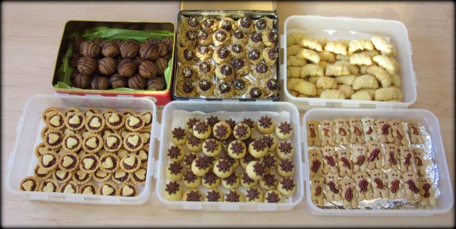 No jaz sem danes naredila prvo probno decembrsko peko piškotkov, da vidim, če mam še filing ...polnjeni pirino-ajdovi medenjaki, lešnikovi medvedki, pecan-brusnične košarice, čokoladni huzarji in krhki orehovi rogljički (z dodatkom božičnih začimb)