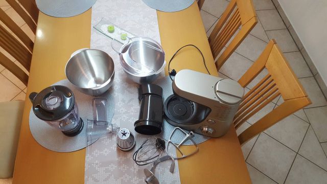 (2posodi za mešanje ,3 metlice,blender......), robot je malo rabljen ....lp