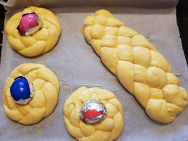 Ker sem to že delala, moj nasvet je, da pirh zaviješ v alu folijo, da se testo ne pobarva. Po peki se folija čisto enostavno odstrani, pirh se pa vrne v gnezdo.