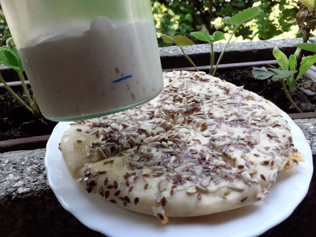 Osnova vsem tem kruhom so bile droži, večinoma pripravljene iz ržene moke in mlačne vode. Recept , ki ga bom napisala, je za hlebec težak okoli 1 1/2 kg.