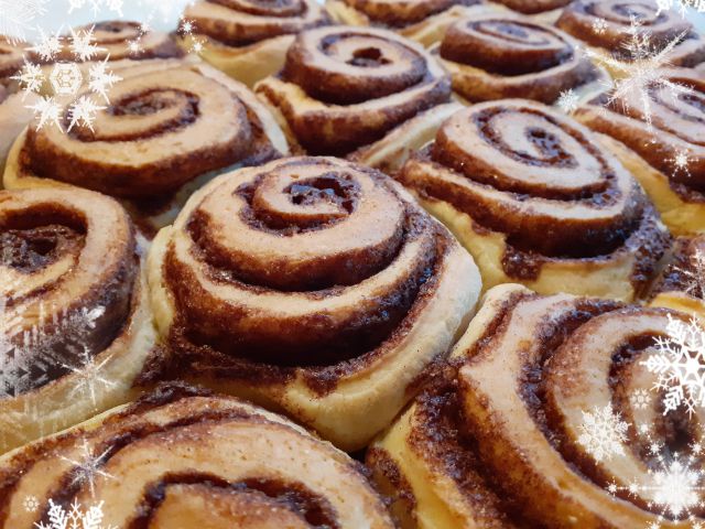 Da pa se je doma lažje čakalo, da bo praznično pecivo na mizi, sem pa spekla še cimetove rolice. Tudi z drožmi.