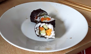No, enkrat sem se spomnila prej prit še sem objavit - Japonska kuhinja - jedli smo suši (sicer brez surovih rib, smo dali dimljenega lososa, ki ga tudi uporabljajjo:).