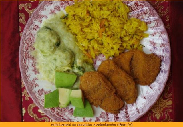 Sojini zrezki po dunajsko z zelenjavnim rižem