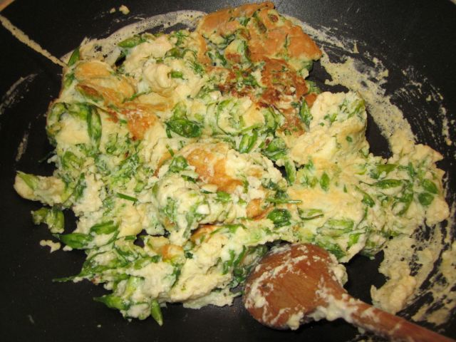 Fritaja s čemaževimi popki/cvetovi ter solata.