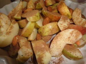 solata iz pečenih paprik, jabolka narezana na krhlje, posuta s cimetom in pečena v pečici,