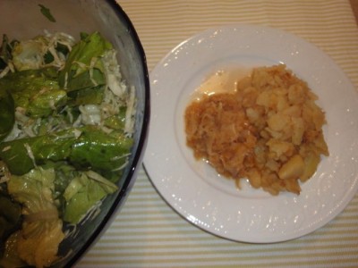 Nedelja, škrobni dan: pražen krompir, malo zelja iz segedina in mešana solata.