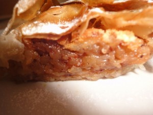 Jaz bom jutri zvečer naredila jabolčni štrudelj. Polnila ga bom z veliko količino jabolk, orehi in dala bom veliko cimeta. Morda še kaj.