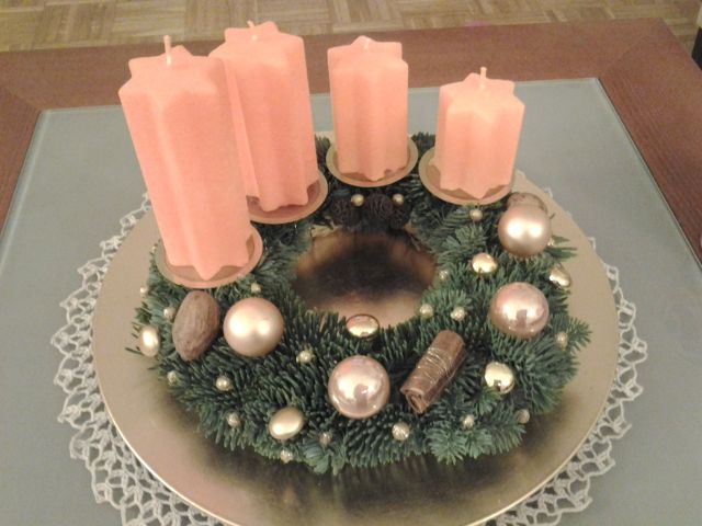 Mi si decembrske praznike tudui naredimo po svoje. Tašča me je navadila, da dam adventni venček s štirimi svečami na mizo v kuhinji ali v dnevni sobi (ker imam bivalno kuhinjo, ga imam jaz tam, tašča in svakinja pa ga imata v dnevni sobi) in potem vsako nedeljo pred božičem prižgemo svečko - prvo adventno nedeljo prvo, naslednjo nedeljo že gorita dve, potem tri in na božični večer vse štiri. Venček pa visi tudi na vratih v hišo, v predsobi pa še omelo (to menda odganja prepir izhiše). V neke vraže sicer ne verjamem, tudi verna nisem in ne hodim v cerkev, a spoštujem božič kot krščanski praznik in predvsem družnski praznik. Na sam božič vedno okrasimo jelko, potem s taščo pripraviva svečano večerjo za vseh deset, kolikor nas živi v isti hiši. Pod smrečico znosimo darila, potem pa se zvečer ob njej zberemo, kakšno "zimsko" in "božično" zapojemo, si razdelimo darila in jih v dnevni sobi pogledamo - vedno smo vsi presenečeni, ker si nikdar ne povemo,kdo kaj dobi. Ko pospravimo darila gemo k večerji, kakšno rečemo, predvsem tudi kaj spijemo (jaz bom letos žal samo drugim nalivala rujno vince...). Pa seveda najbolj pomembno: tja od začetka decembra naprej po hiši diši po domačih piškotih;pečeva midve s taščo, vsaka svoj program, svakinja pa vzame od vsake nekaj. Ampka to je pri nas običaj, zato je ona zadolžena zakrasitev jelke in aranžiranje mize - to pa je paša za oči... No, takoje pri nas. Glavno, da jepraznično vzdušje, pa en venček gor ali dol. Aja, letos pa je venček na vratih še posebej dišeč - na Zanzibarju soimeli take čudovite, iz začimb,prevladujejo klinčki, pa malo cimeta se zaznava... mamamia mamamia