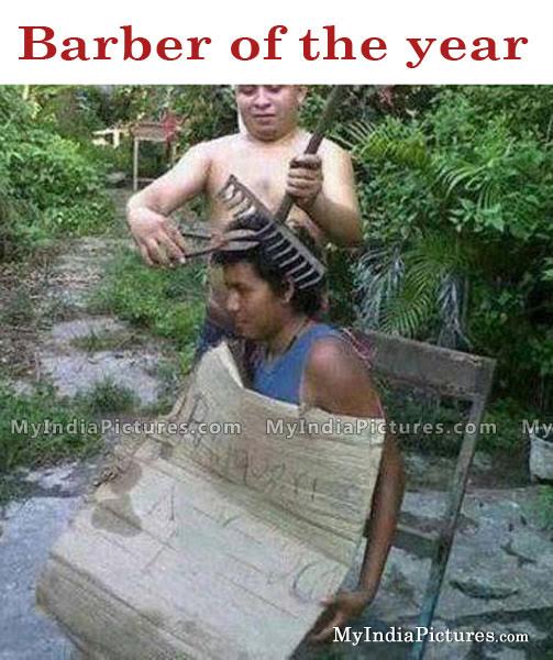 Moževemu očetu Lojzu odreže brado in z njo nanaša barvo.