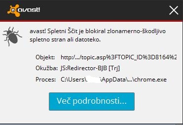 mi ne glede na katero stran na forumu Kulinarika. net grem. Drugod mi Avast