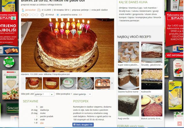 Cache sem počistila, pa vseeno pokaže takole: https://www.kulinarika.net/recepti/5814/sladice/biskvit-
