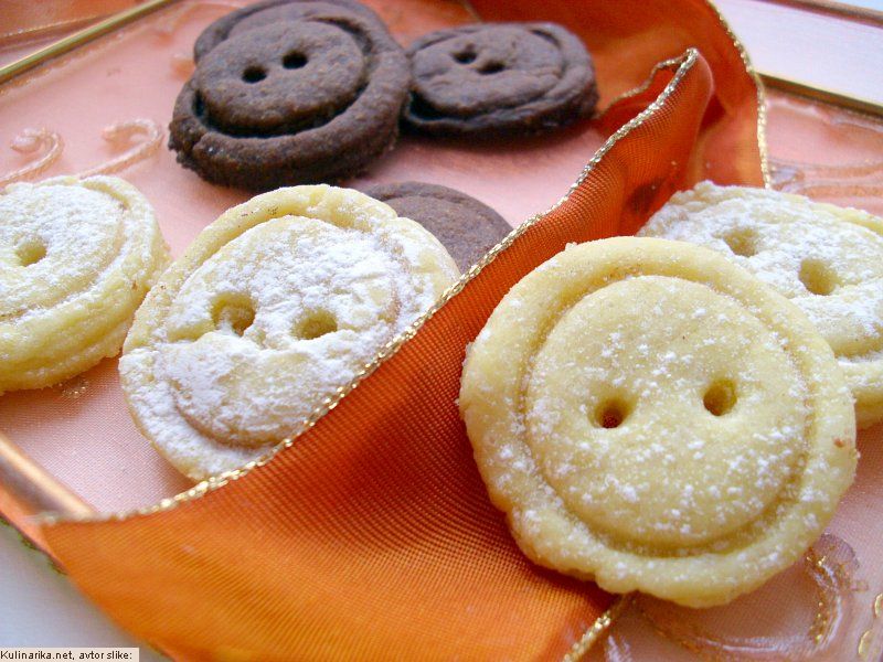 Do sedaj sem bila na dveh tečajih peke piškotov in smo na obeh pekli tudi gumbke. Naredili smo jih tako, da smo naredili cca 3 cm debel svaljek in nato narezali z nožem kolutke debele cca 5 mm. kKlutke smo obrnili in jih na sredini pritisnili s prstom navzdol, da je okoli nastal rob. Luknjice smo naredili s palicico za ražniče. Meni so to eni boljših piškotov.