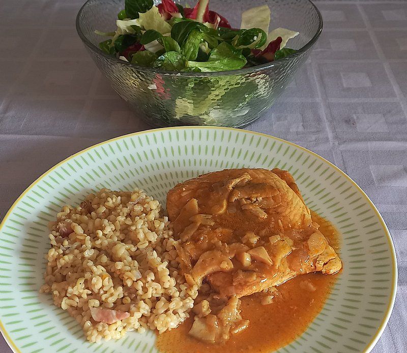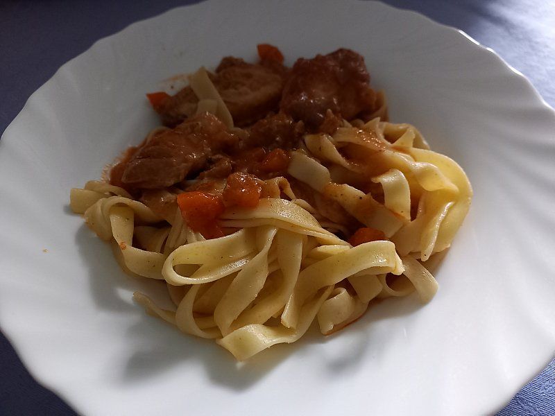 Široki rezanci, piščančji paprikaš