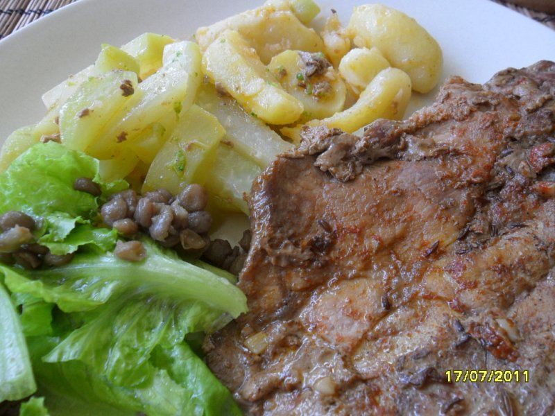 peč.svinj.vrat,krom.in koler. zel.sot.z lečo
