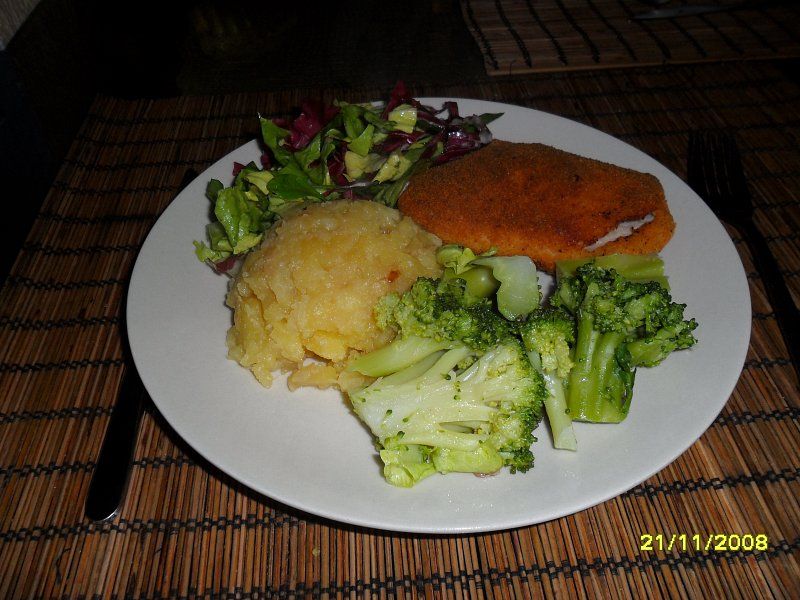 cordon blue,brokoli,pražen krompir, zelena mešana solata
