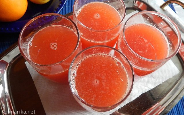 Banane, limona, pomaranča, kivi, jabolko in malo borovnic.
