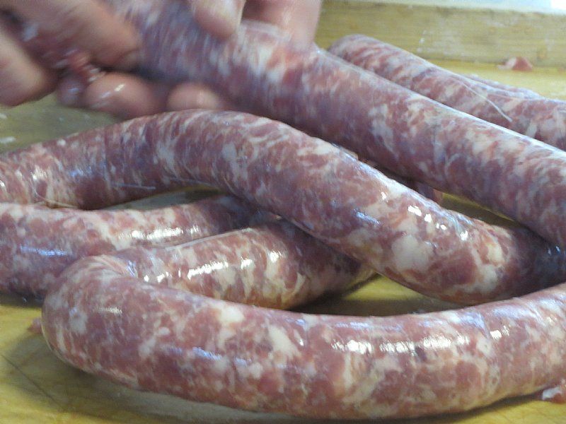 včeraj dopoldan pa se je rezalo slanino za ocvirke, mlelo meso za pečenice. re-