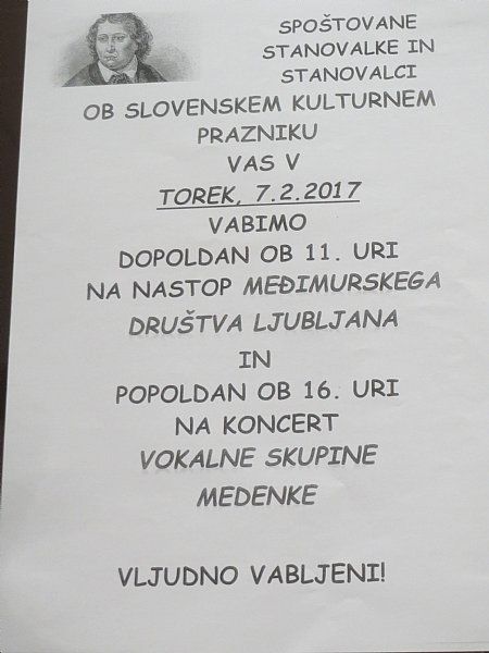 Ob današnjem kulturnem prazniku smo imeli včeraj kar dve prireditvi: dopoldne