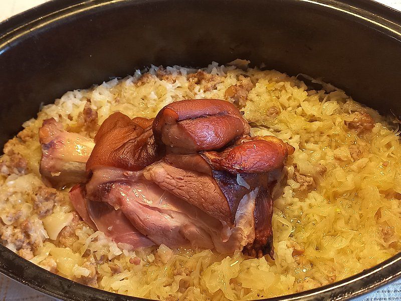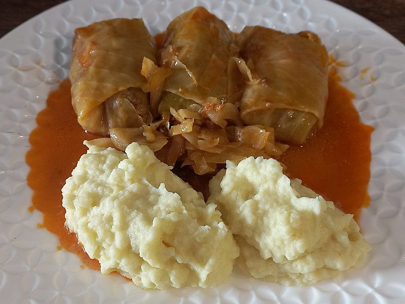 Pečeno puranje, mlinci; zelena in zeljnata solata