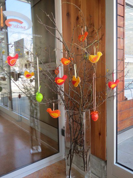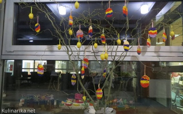 Zanimiva velikonočna dekoracija na razstavnem hodniku