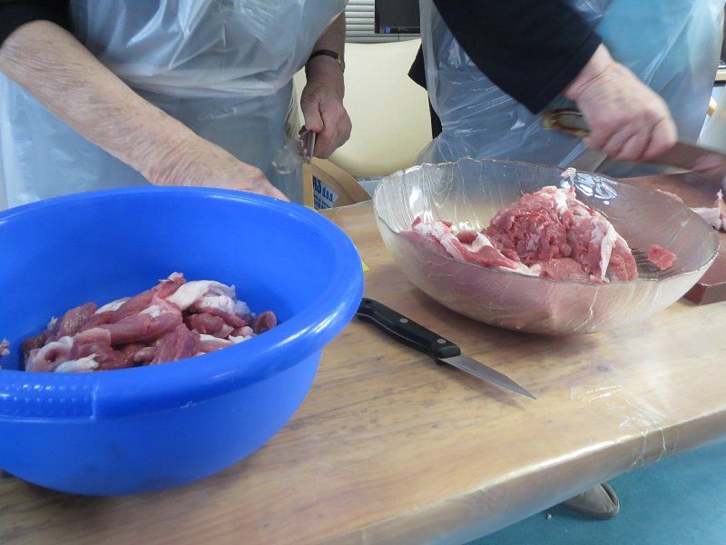 hladilnico, danes pa se začne zares: rezanje, sekanje, mletje...