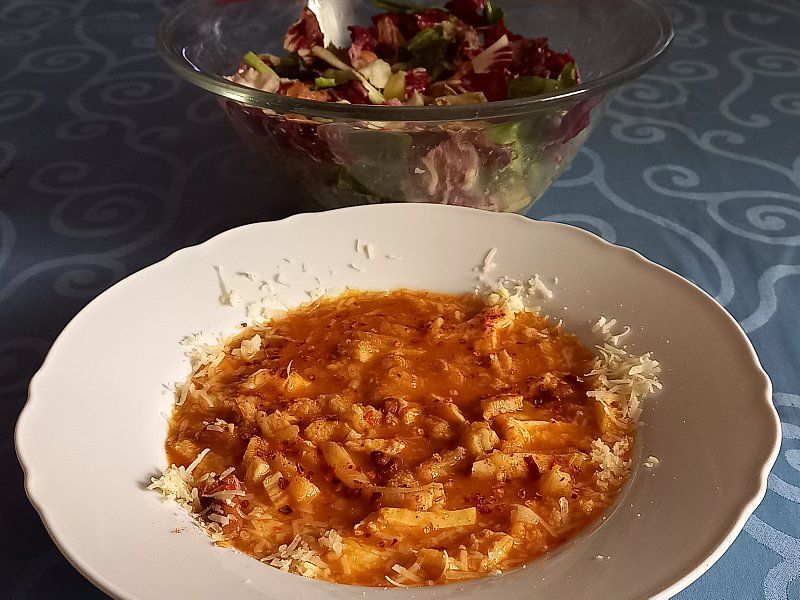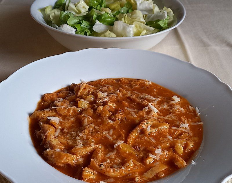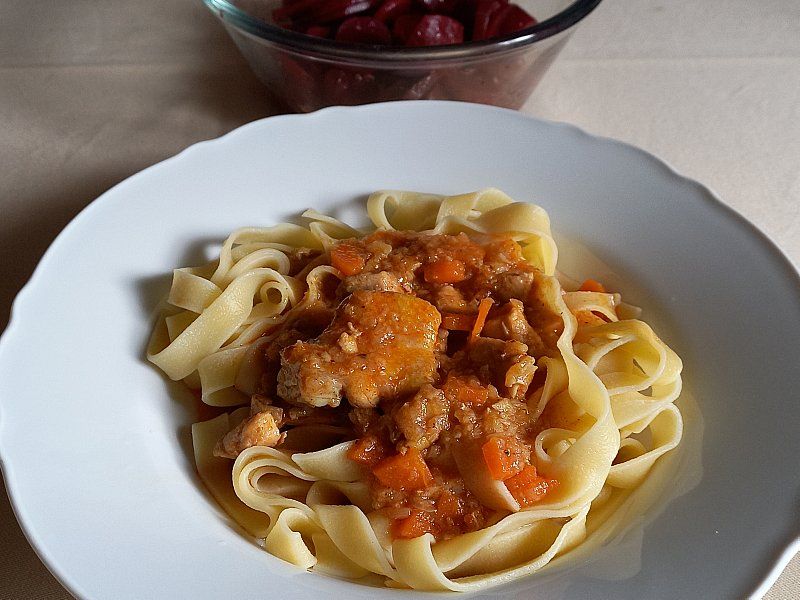 Piščančji paprikaš, široki rezanci; rdeča pesa