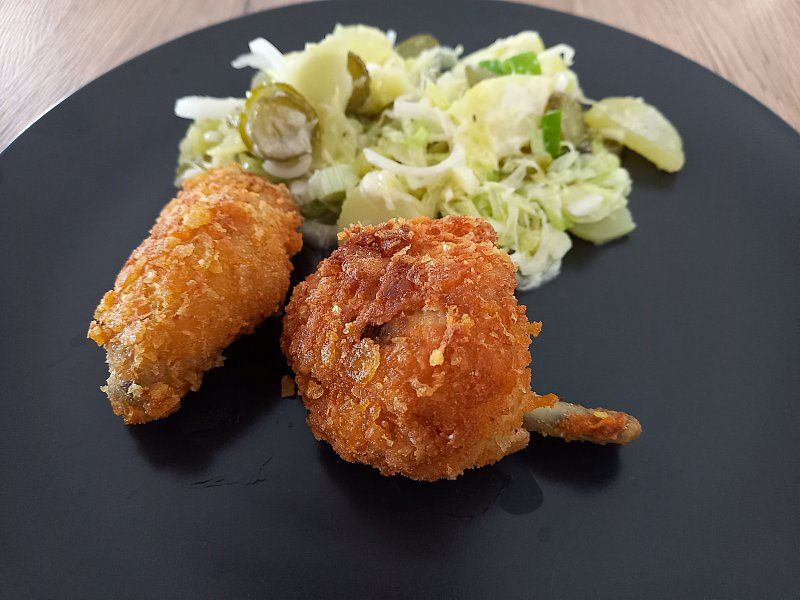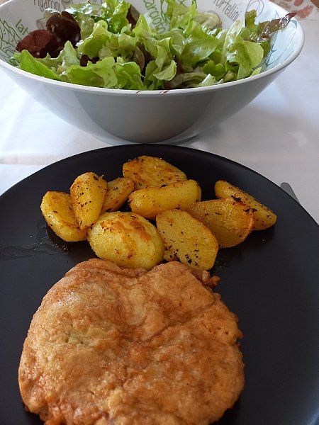Pečen krompir, mesni ščipanci, zelena solata s paradižnikom